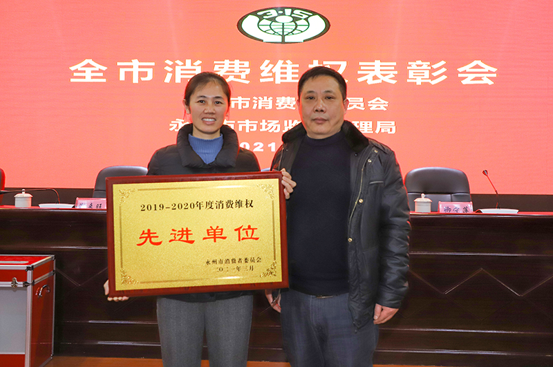 近日,永州市消費(fèi)者委員會(huì)、永州市市場(chǎng)監(jiān)督管理局召開(kāi)全市消費(fèi)維權(quán)表彰會(huì),會(huì)上,永州市市場(chǎng)監(jiān)管局局長(zhǎng)周云玲先后對(duì)19家2019-2020年度全市消費(fèi)維權(quán)先進(jìn)單位、10位最美消費(fèi)維權(quán)人物予以表彰。